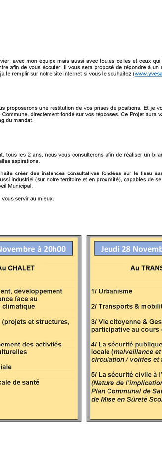 Vous trouverez ma lettre de candidature ainsi que les dates de nos 2 prochaines réunions publiques (à 20h - les 14 novembre au CHALET et 28 novembre au TRANSFO).